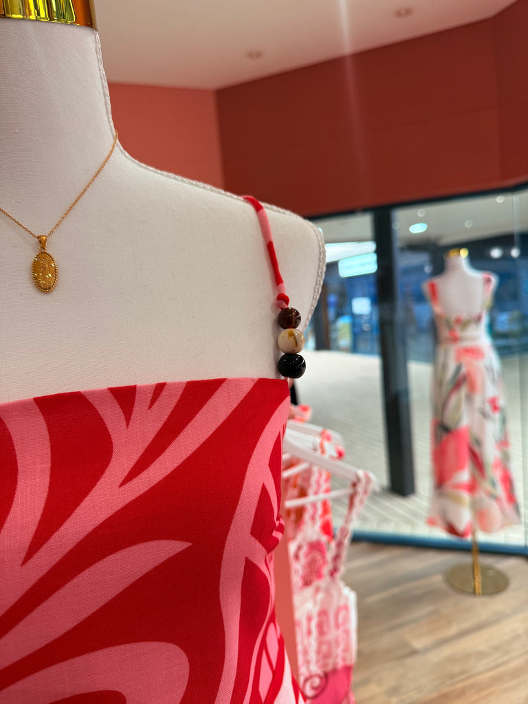 Crafted from a breathable cotton-polyester blend, the Layla Dress combines practicality with refined aesthetics. Its striking seasonal print makes an immediate visual impact, while adjustable straps accommodate various body shapes with ease. The side zipper streamlines dressing, and delicate beadwork on the straps elevates the overall design from everyday wear to occasion-ready elegance. Versatile enough for garden gatherings or weekend travels, this dress balances comfort with polished sophistication. Composition: 65% Cotton, 35% Polyester.
